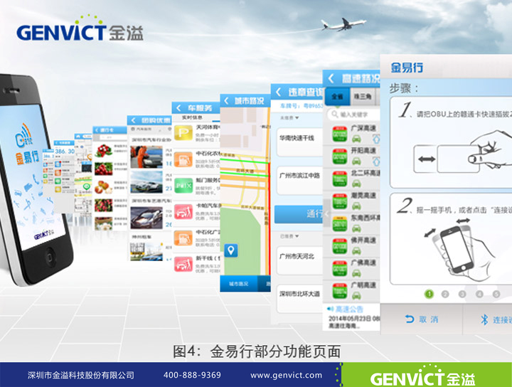 金易行是金溢科技联手支付宝重磅打造的APP,为车主用户量身定制:为车主提供云服务(空中充值、OBU管理、卡务管理)、云资讯(交通实时路况、违章代缴、车险理赔)、云社交(社区管理、车友互动)、云电商(O2O商城、团购优惠、查周边、找车位)等汽车生活服务。