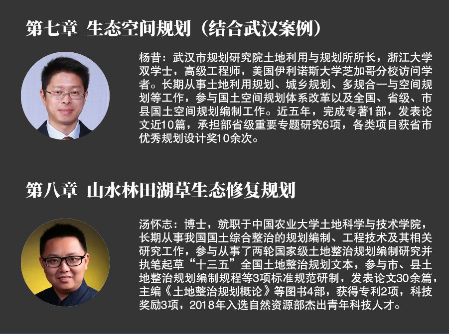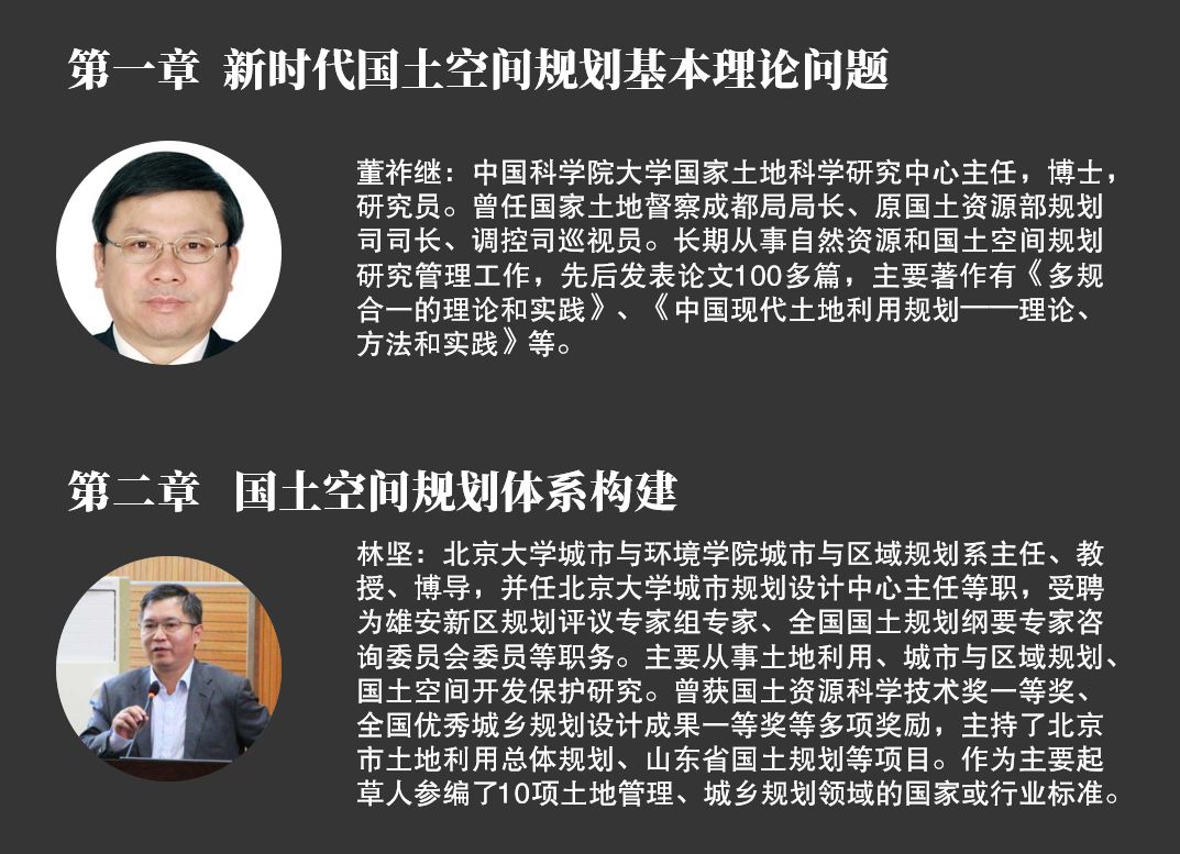 围绕“中共中央、国务院关于建立国土空间规划体系并监督实施的若干意见”和《〈中华人民共和国土地管理法〉、〈中华人民共和国城市房地产管理法〉修正案(草案)》等政策法规,权威解读新时代国土空间规划基本理论问题;研判国土空间规划编制实施面临的形势和发展趋势;探索国土空间规划体系构建;资源承载能力与国土空间开发适宜性评价;主体功能区划分与“三线”协调;结合实际案例,为城镇、农业、生态空间规划、生态修复规划、综合交通体系规划、城市中心城区规划注入新思路、新方向。