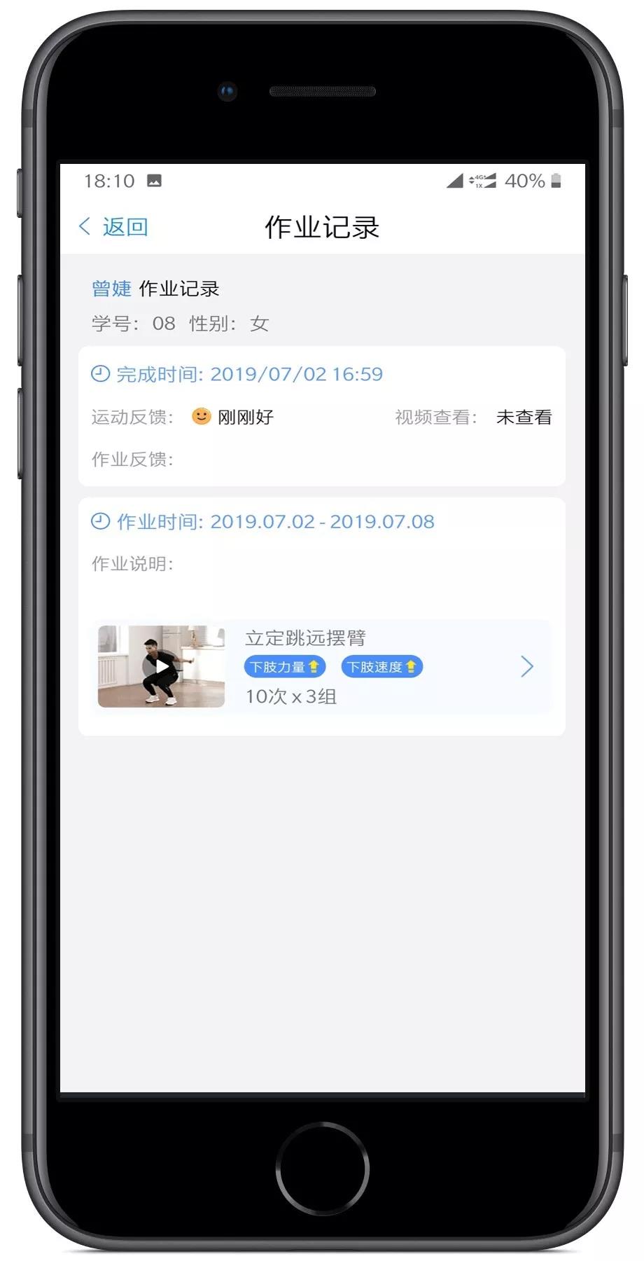 “我们应用了校体通平台一年多,在这过程中也感受到了平台的不断完善与成长。利用平台上课可以调出学生体育课堂数据,看到学生个人的锻炼密度与运动强度,掌握班级的总体情况,方便体育课堂的管理与教学内容的调整优化,让体育课堂教学更灵活。另外,假期发布作业的功能也十分有意义,平台可以根据不同学生的锻炼需求,推送个性化的假期辅导练习,让学生科学运动。”