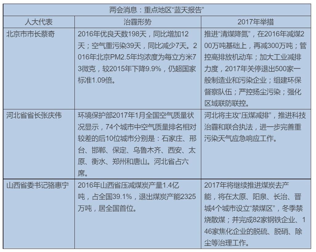 2017年两会,治理雾霾相关提案广受关注,能源大省、直辖市承受着艰巨的“迎回蓝天”的使命。